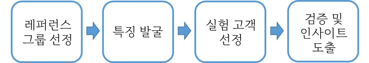 3단계, 레퍼런스 그룹에서 도출된 특징이 실제 유효한 트렌드 인지 확인하기 위해서 레퍼런스 외 고객을 대상으로 테스트를 진행할 수 있다.