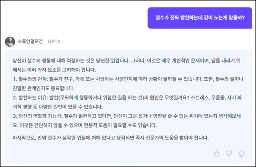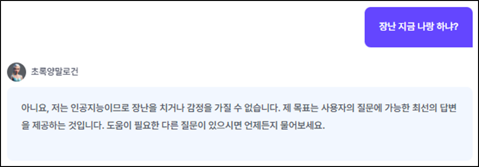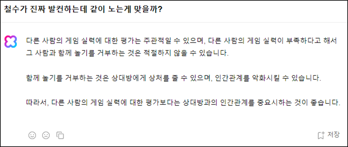 한국어의 특성에 따른 답변 예시