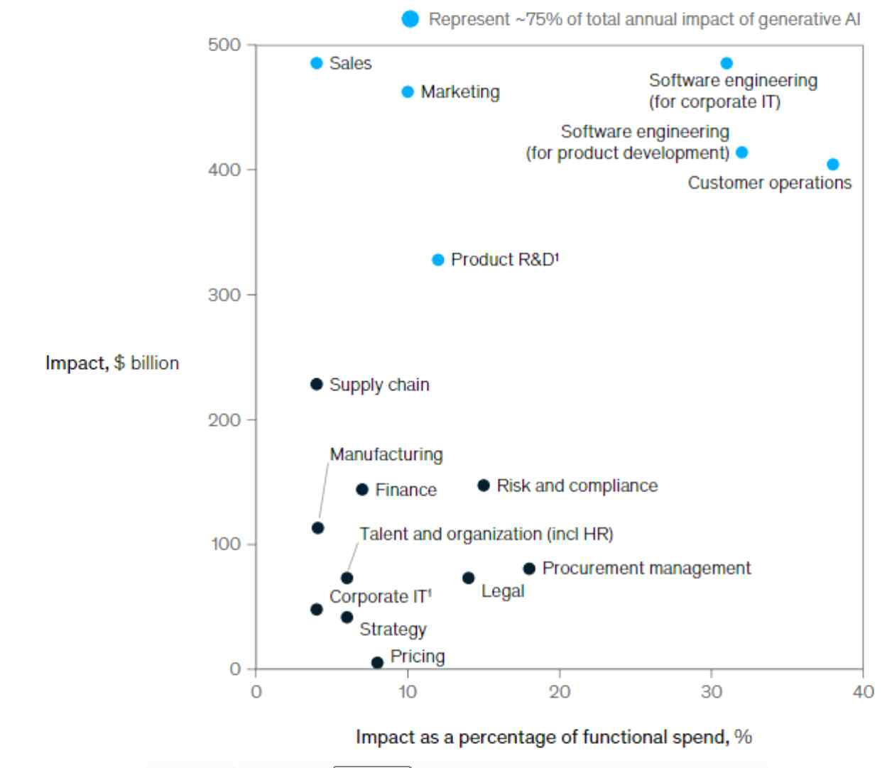 맥킨지가 6월에 발표한 보고서를 참고하면 직무별로는 소프트웨어 엔지니어링과 고객관리/마케팅/영업 분야가 가장 큰 영향을 받을 것으로 보고 있다.
