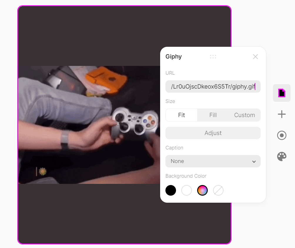 저 사이트에 있는 이미지가 맘에 들지 않는다면 원하는 GIF를 웹사이트에 올린 후 URL을 추가해서 사용할 수 있다.
