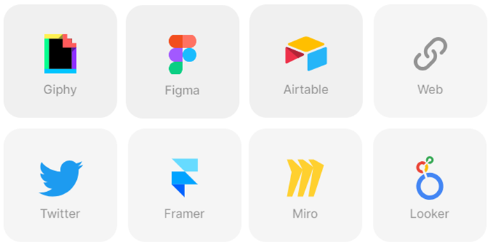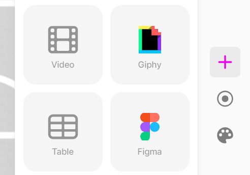 우측 3번 영역에서 요소를 추가할 때는 +를 누르면 아래와 같이 텍스트와 표, 이미지 등을 추가할 수 있는데 Giphy, Figma 등 처음 보는 메뉴들이 잔뜩 있다.