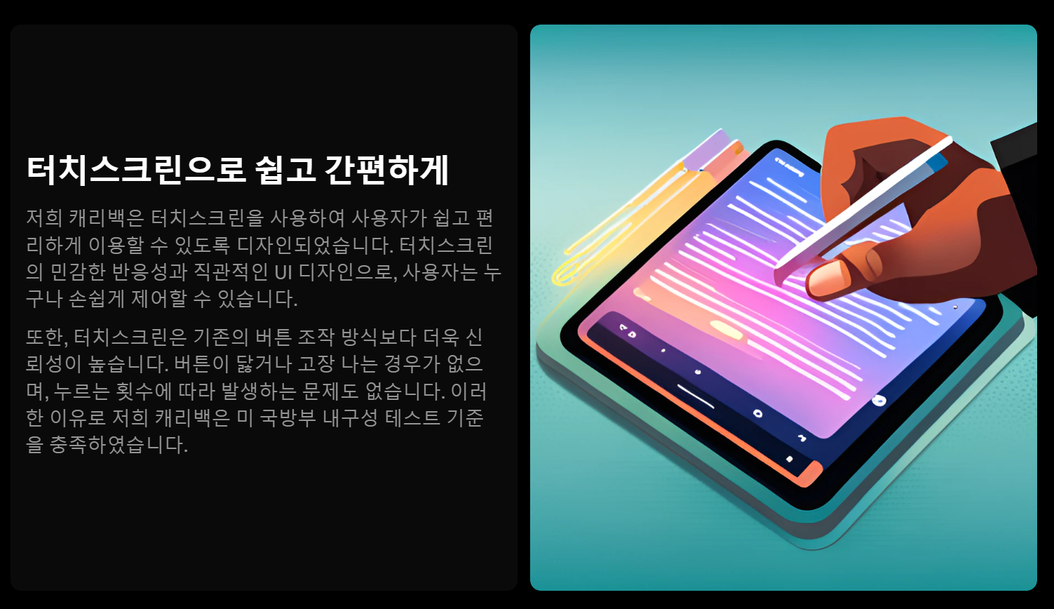 최근 핫한 LG 스탠바이미 Go 홈페이지에서 핵심문구를 4줄 가져와서 아래와 같이 입력한다.