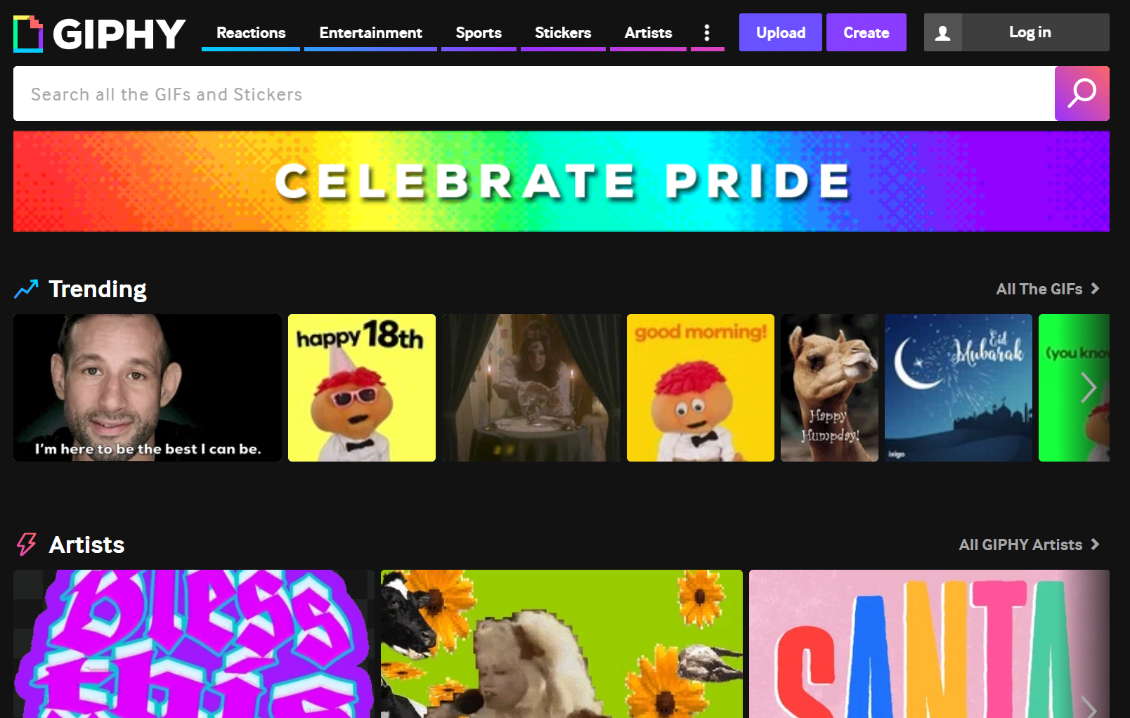 Giphy(바로가기)는 GIF 애니메이션을 제공하는 웹사이트로 사이트에 들어가면 국내에서는 절대 사용하지 않을 것 같은 이미지들이 잔뜩 있다.