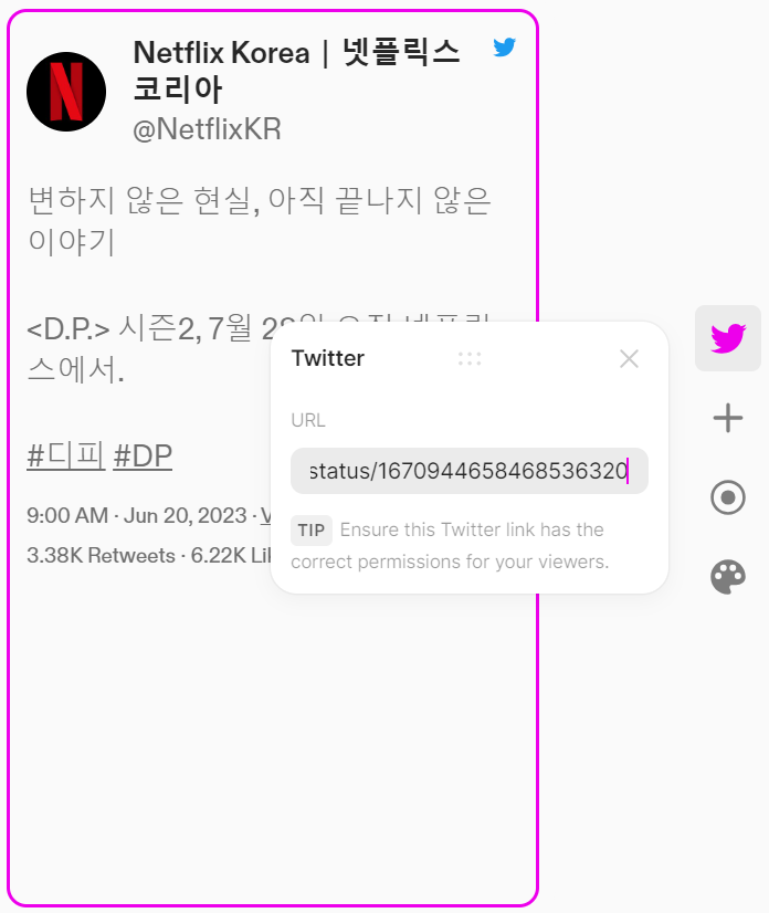 URL로만 트위터의 특정 피드를 추가할 수 있다.