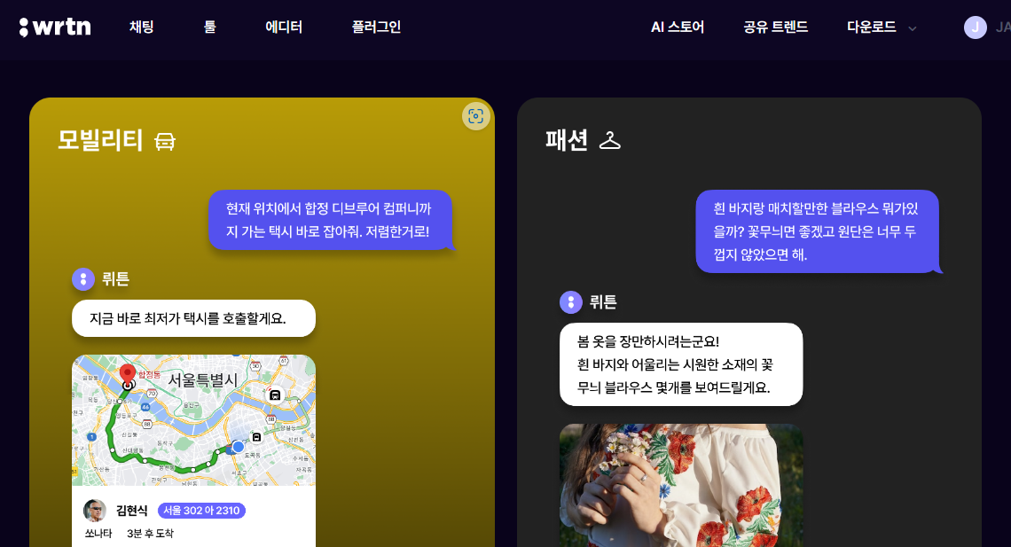 필자가 생각하기에 국내에서 이러한 LLM의 활용 방식, 특히 API를 활용한 인터페이스에 대해 가장 먼저 적응하고, 공격적인 마케팅을 펼치고 있는 기업은 뤼튼(wrtn.ai)으로 보인다.