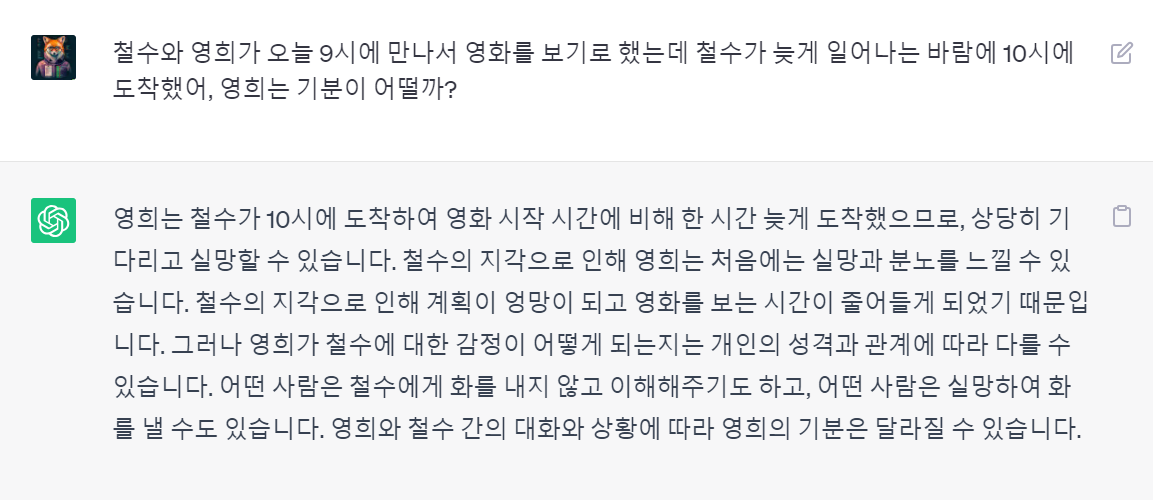 챗GPT, Bard와 같은 대규모 언어 모델(LLM, Large Language Model)은 언어모델이라는 이름에 걸맞게 문장을 생성할 뿐 아니라 프롬프트에 입력한 글을 요약하거나, 문장을 해석하여 화자의 감정이나 행동을 분석하며, 간단한 추론을 하기도 한다.