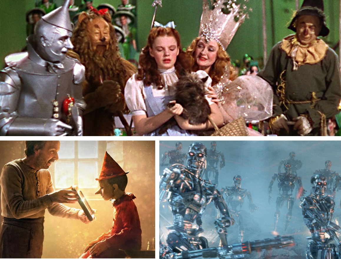 오래된 영화나 소설에서는 AI를 오즈의 마법사나 피노키오처럼 인간을 꿈꾸는 연약한 기계로 그리곤 했다. 한편, 터미네이터와 매트릭스에서 지구를 두고 격돌하는 또 하나의 세력처럼 설정했으며, 어느덧 현실에 가까워진 최근에는 AI를 비효율적인 인간을 통제하려는 지배자로 표현하기도 한다.