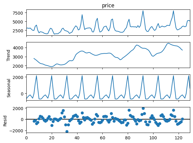 result = seasonal_decompose(X.price, model='addictive', period=12)